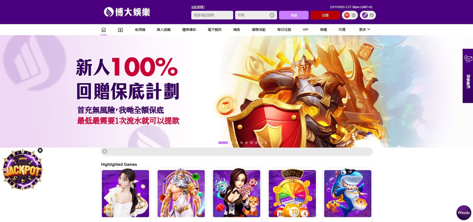 博大娛樂 BODA8HK 專注於打造非凡的遊戲體驗,巧妙地融合了令人心跳加速的快感、琳瑯滿目的遊戲選項,以及優厚的獎勵回饋。無論您鍾情於體育賽事投注、偏愛刺激的釣魚機遊戲,或希望於老虎機和真人娛樂遊戲中尋求刺激,在此都能找到切合您獨特品味的娛樂項目。快速便捷的提款流程、頂尖的客戶服務支援,以及慷慨大方的優惠活動,共同構築了一個安全無虞且簡單易用的平台。